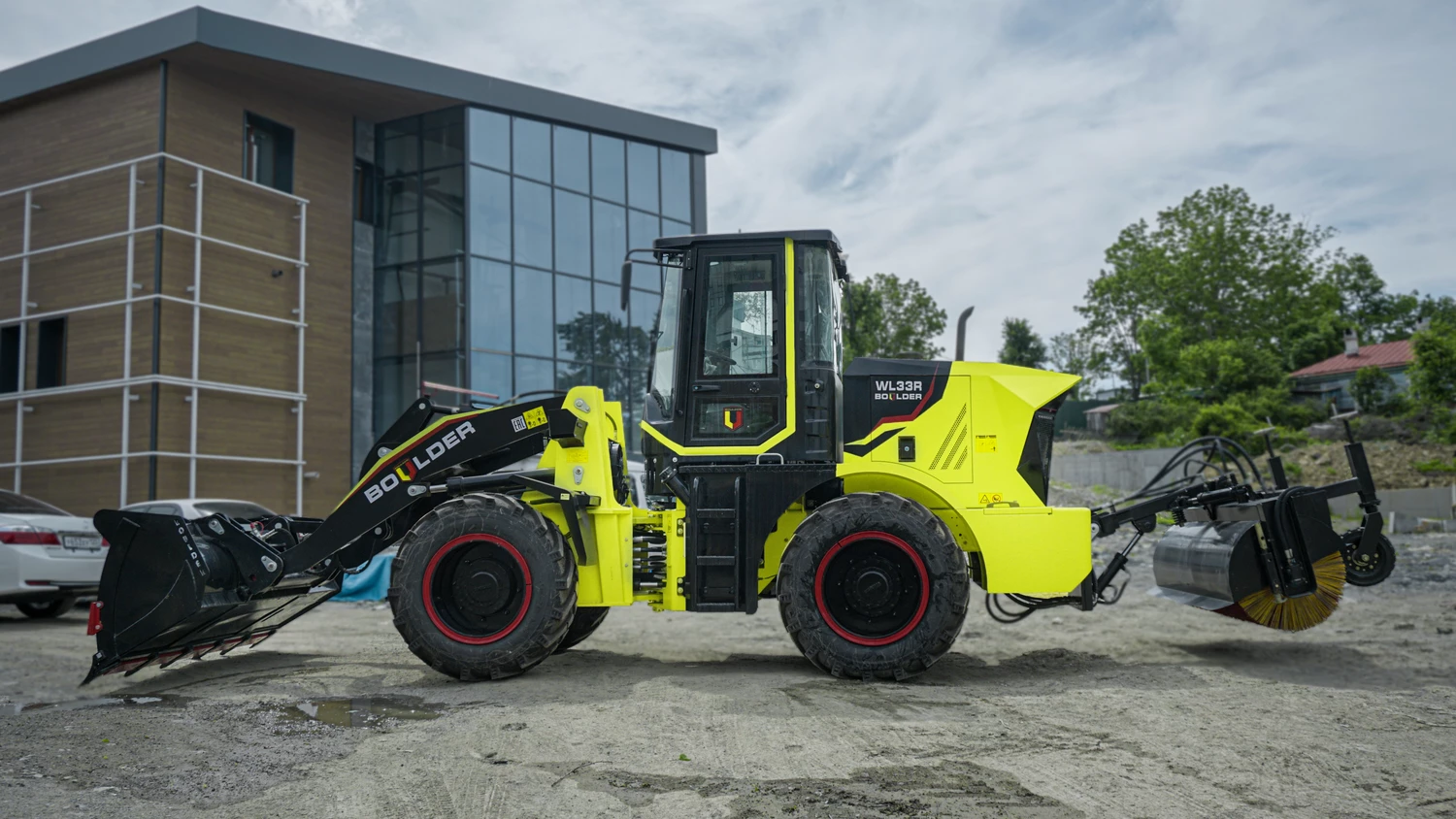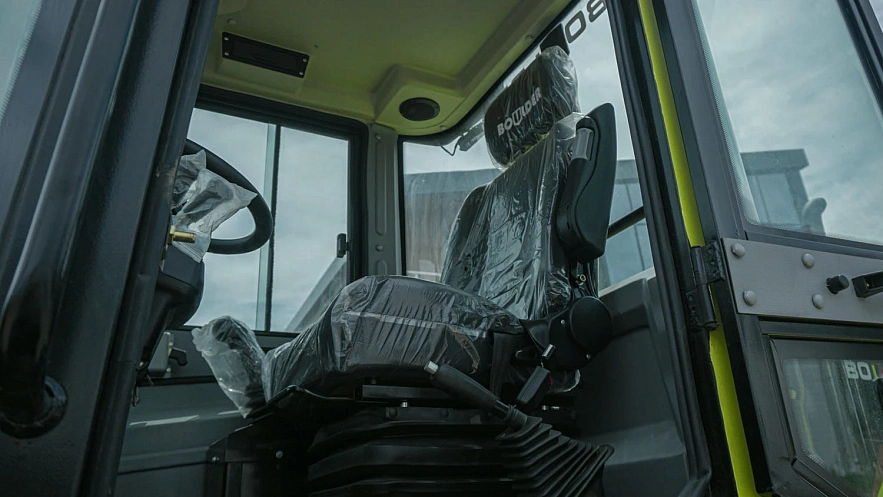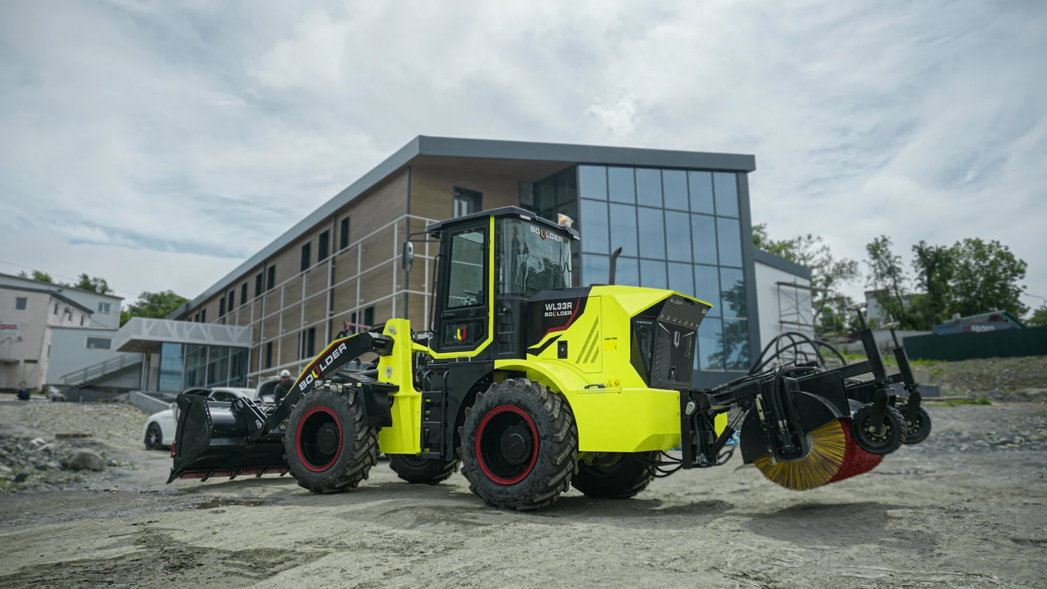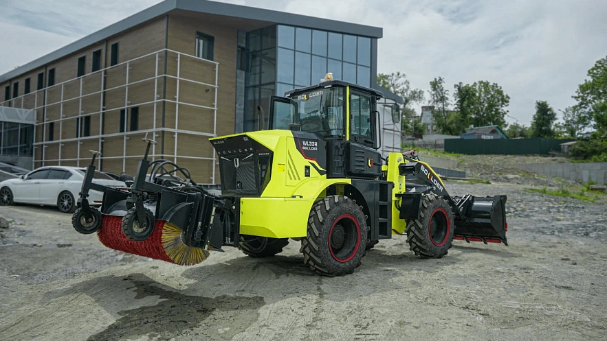 Новый фронтальный погрузчик с подметальной щеткой, от российского производителя Boulder.