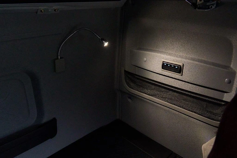 - Полезные опции: холодильник 14 литров, розетка 220 Вольт, видеокамеры кругового обзора 360°, автономный отопитель, климат-контроль, контроль усталости водителя