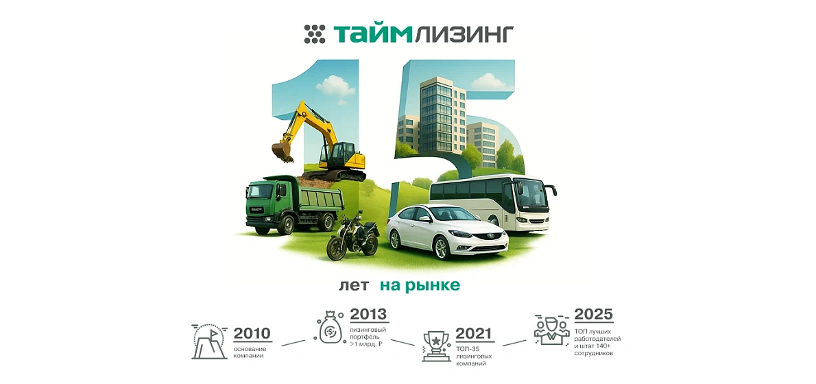 15 ноября ТаймЛизинг отмечает своё 15-летие — важную веху в истории компании, которая с 2010 года помогает бизнесу клиентов развиваться и расти.